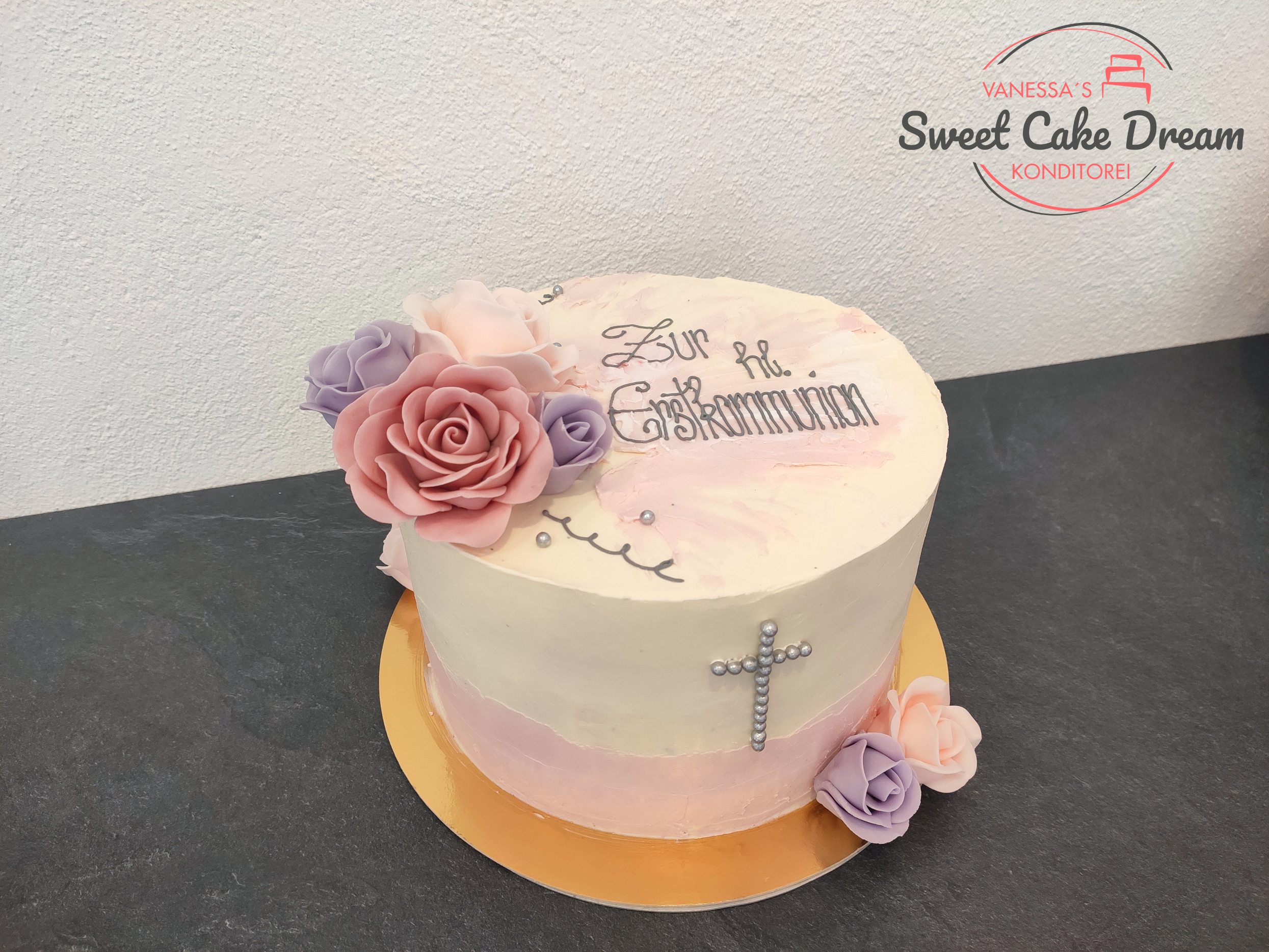 Firmungstorte eingestrichen hellrosa